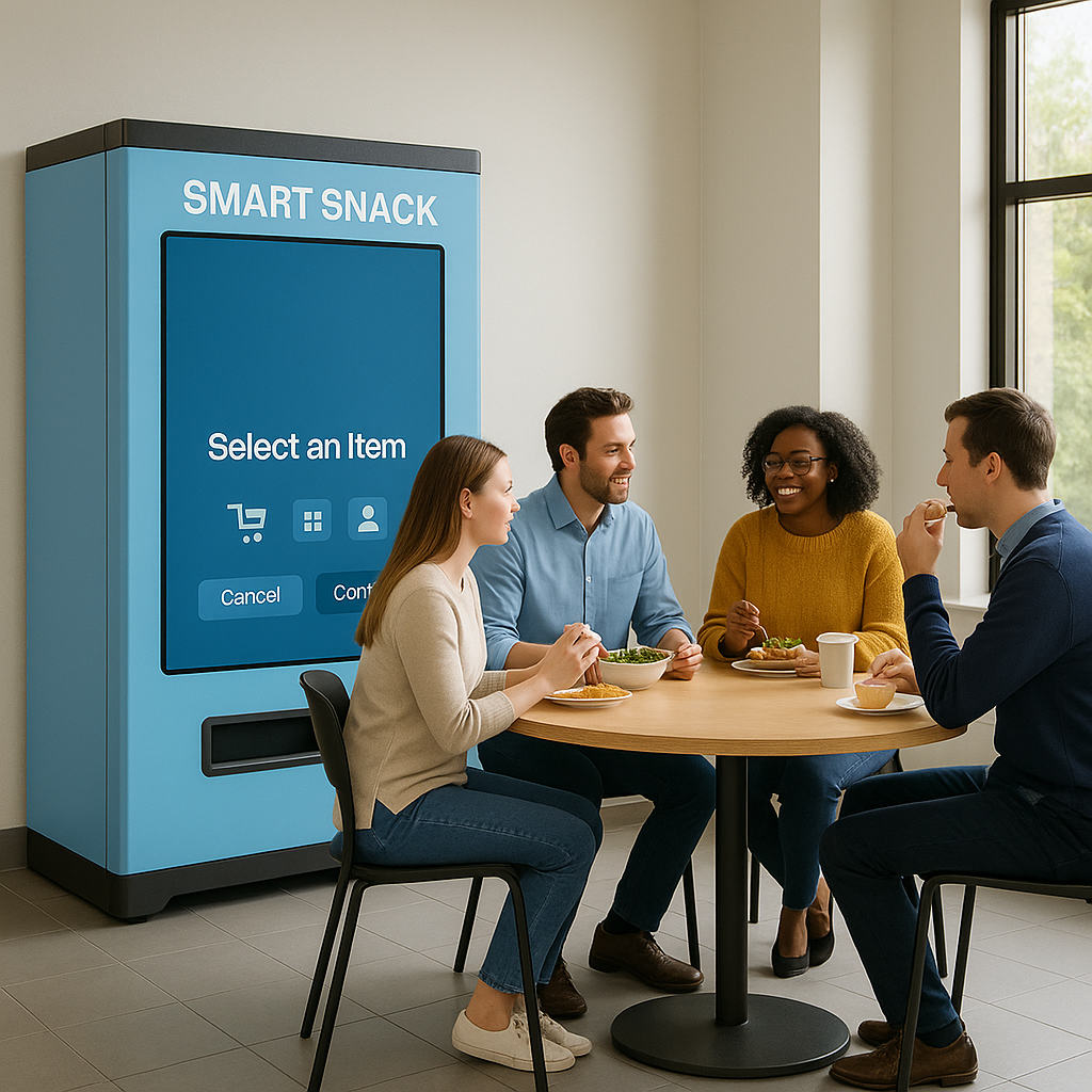 Smart Snack ist die moderne Antwort auf die wachsenden Ansprüche an flexible, gesunde und digitale Verpflegungslösungen am Arbeitsplatz. Die innovative App-Automat-Kombination bringt frische Snacks und vollwertige Mahlzeiten direkt dorthin, wo sie gebraucht werden – in Büros, Produktionshallen und Unternehmen ohne klassische Kantine.